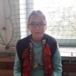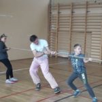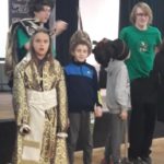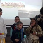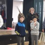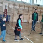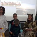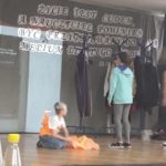 Spotkanie uświetnił pokaz ucznia z czwartej klasy, który przyniósł stroje regionalne. Zaprezentował ich historię, ubierając w nie wolontariuszy i dzieci. Poprowadził też ostatni element spotkania , którym był taniec poloneza. Cała aula wypełniła się tańczącymi parami, wykonującymi figury taneczne pod dyktando Prowadzącego.