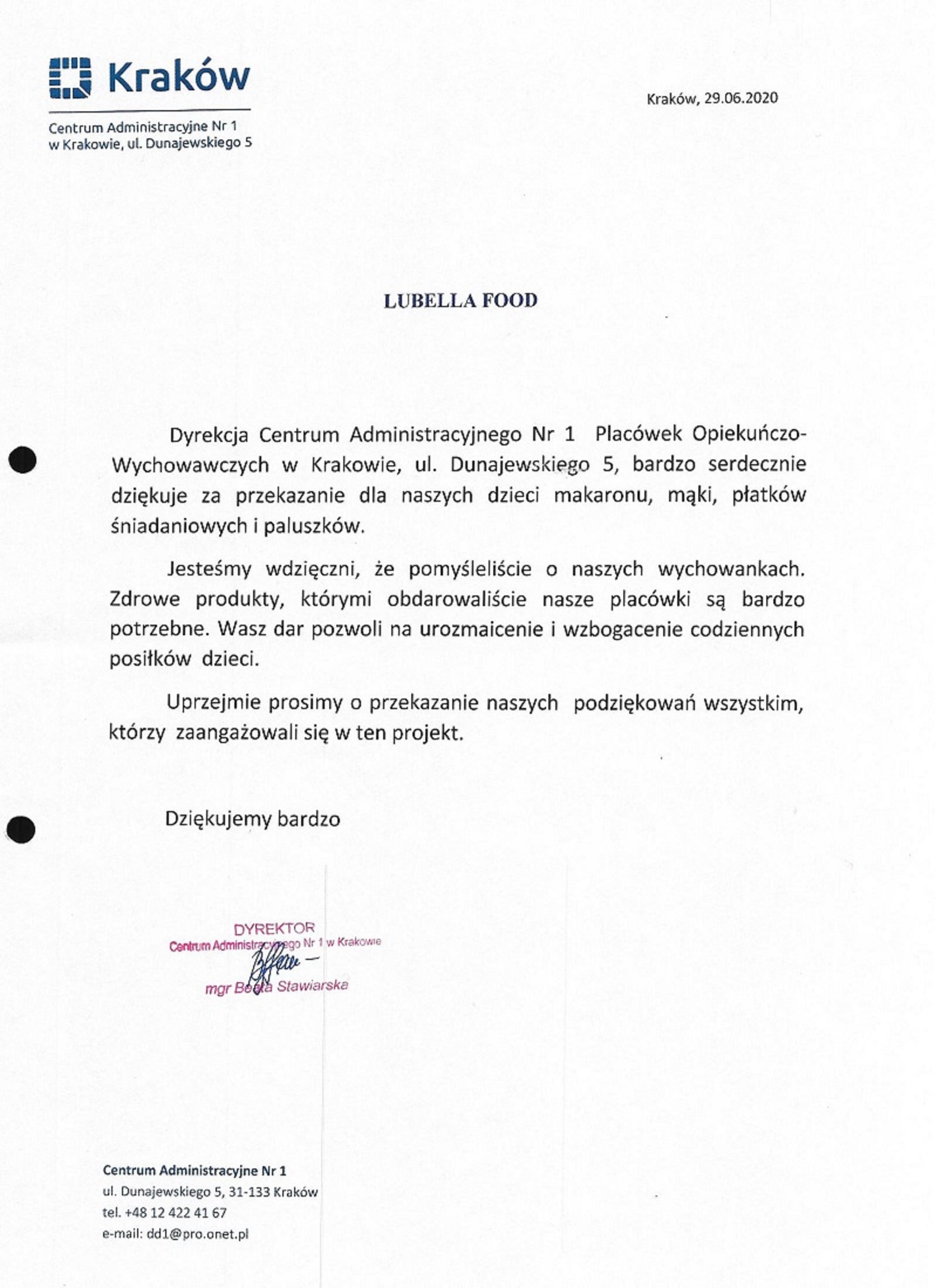 Podziękowania dla FITNESS PLATINUM Kraków